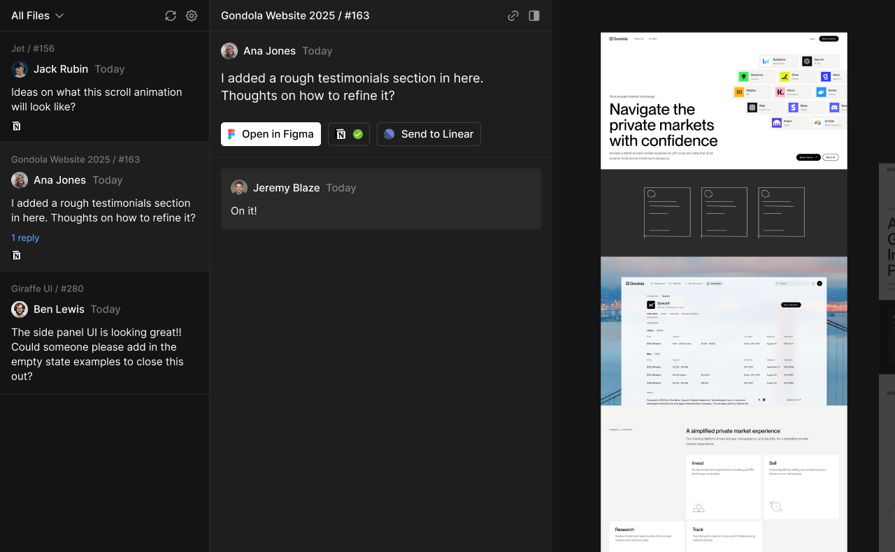 But both of these are missing something. While they both have integrations with Figma, they still don't help us with our core challenge: how to capture conversations happening across our design files, and track their status. And this is where the idea for the new Marathon came to light.